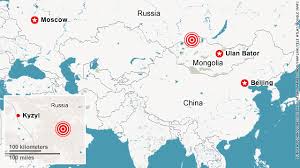 The epicenter of the quake was 28 miles deep and was about 57 miles northeast of Kyzyl, Russia, USGS said.